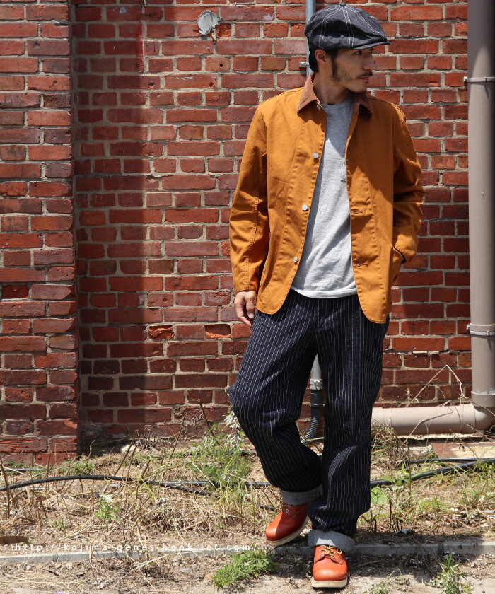オールドアメリカンな雰囲気でコーディネートが楽しめるベーシックなカバーオールデザインはどんなボトムで合わせやすく使いやすい。