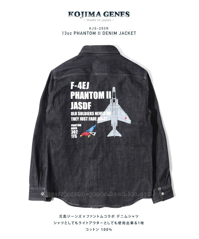 その他 【素材】綿100% 【モデル情報】175cm 65kg 【着用サイズ】Lサイズ 【カラー】インディゴ 商品説明 惜しまれつつも引退を迎えた自衛隊機F-4EJ改 通称「ファントムII」とのコラボデニムシャツ。