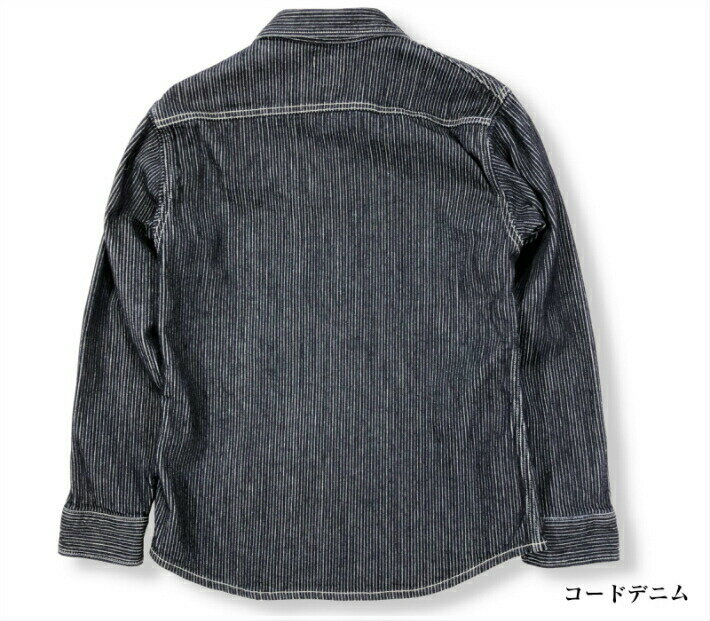 大胆なストライプ切り替えのダイスウィーブとコーデュロイのような風合いとも少し違う独特な雰囲気のコードデニム、それぞれに味わい深いワークシャツです。