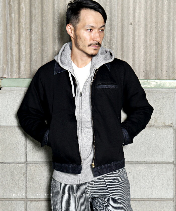 ドリズラーとも呼ばれるショート丈のスポーツジャケットをブラックデニム生地で仕上げたアイテム。